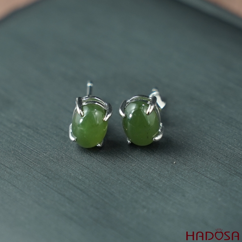 Bông tai Ngọc Bích Canada 6*8mm) bạc 925
