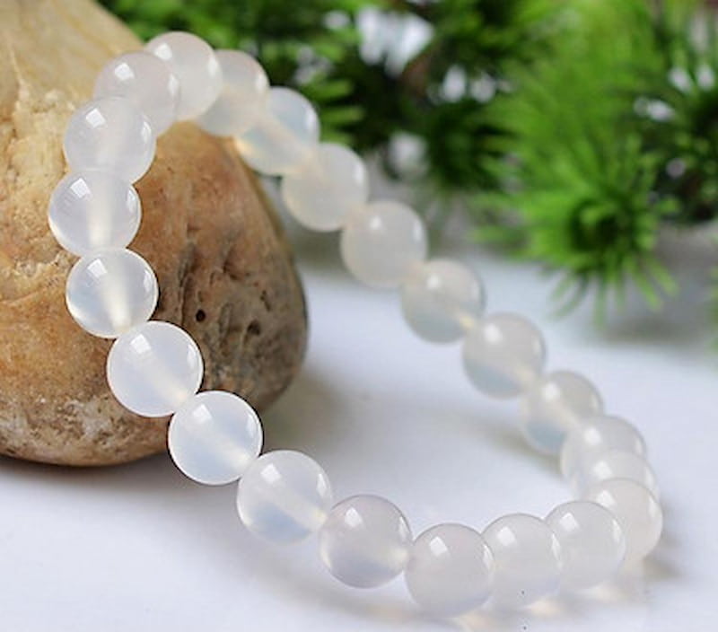 Đá mã não màu trắng được dùng làm vòng tay rất phổ biến