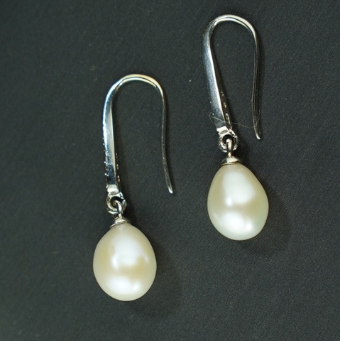 Bông tai ngọc trai hạt gạo 8-9mm bạc 925