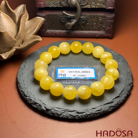 Vòng Hổ Phách Baltic vàng vân sữa 11mm