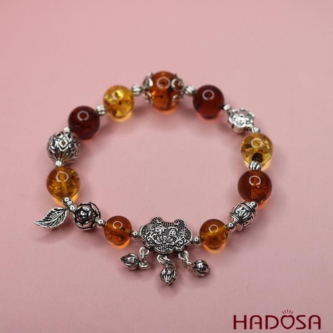 Vòng Hổ Phách mix charm bạc 925 (Thổ, Kim)