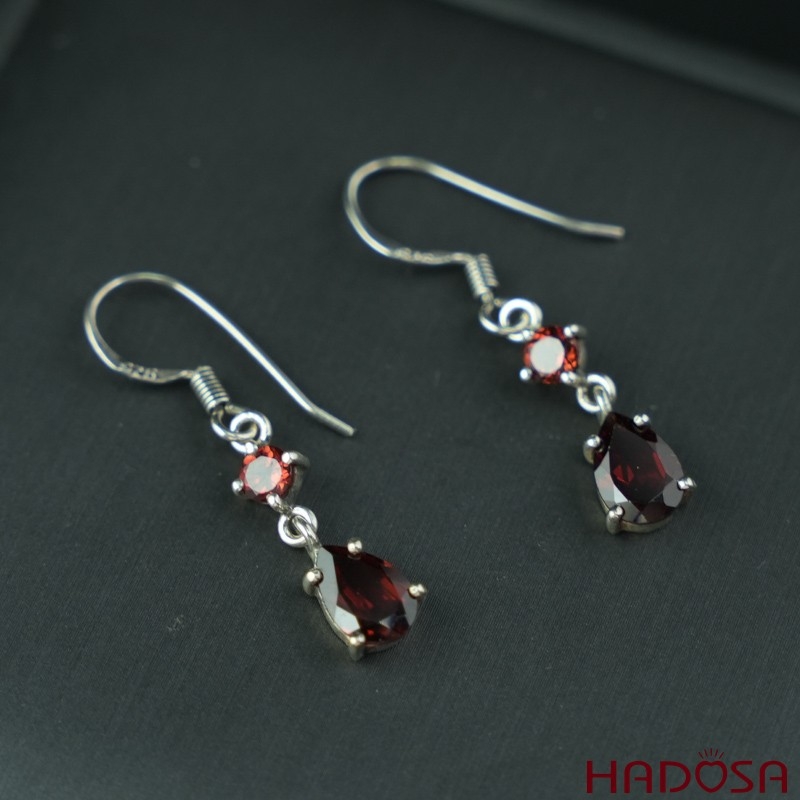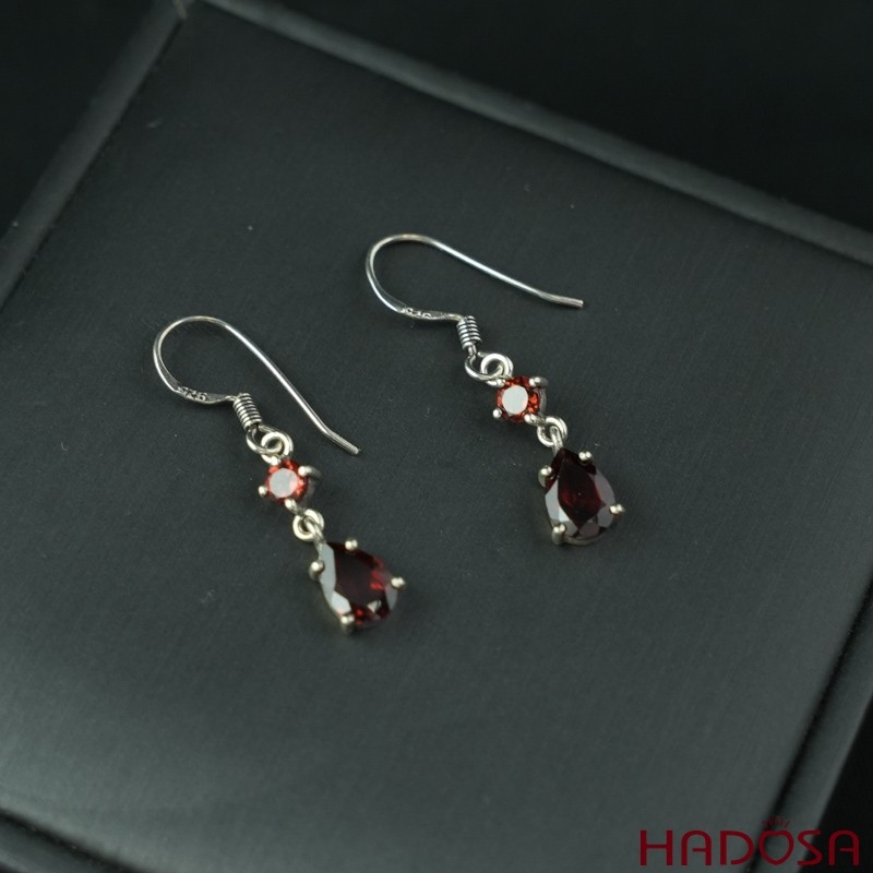 Hoa tai đá Garnet bạc 925 cao cấp
