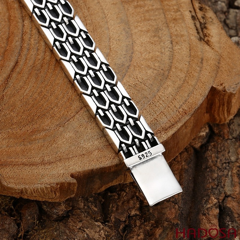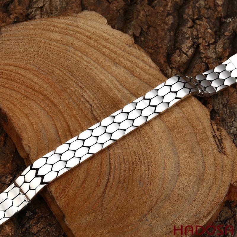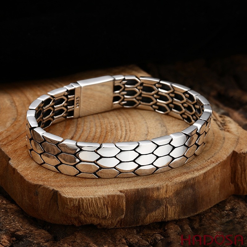 Lắc Tay Nam Bạc Thái S925 Họa Tiết Vảy Rắn Bản Lớn