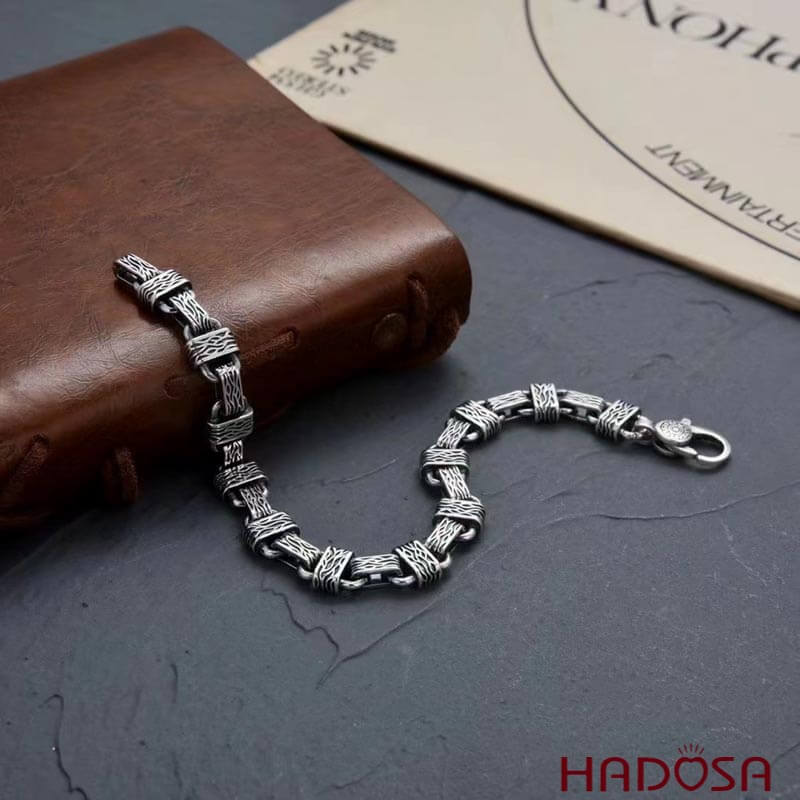 - Các sản phẩm lắc tay bạc nam của Hadosa được xử lý bởi công nghệ oxy hóa cao tạo nên màu đen xen kẽ với màu trắng của bạc và được kiểm soát trong suốt quá trình oxy hoá nên nó rất bền, không bị phai màu theo thời gian bạn sử dụng.