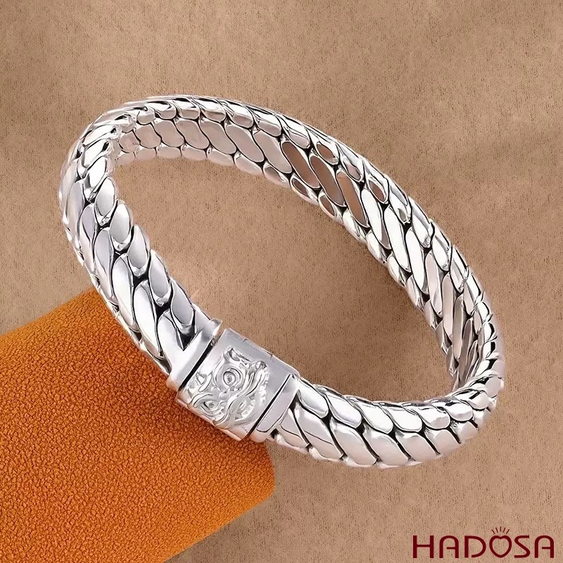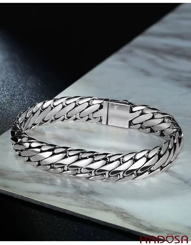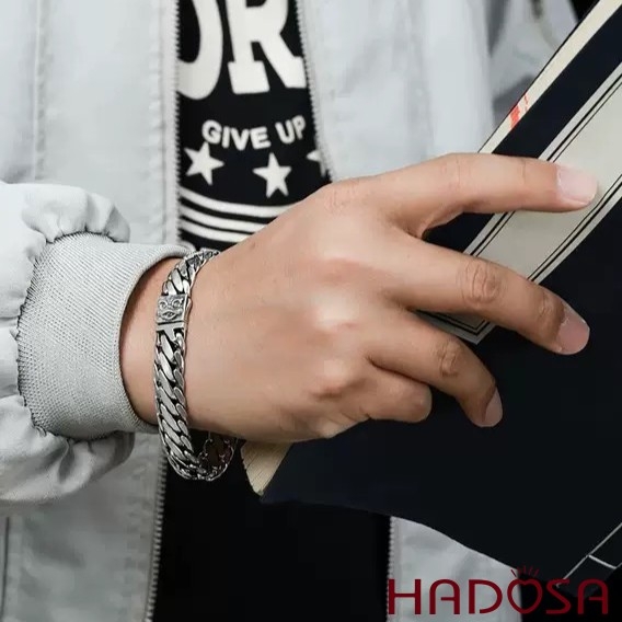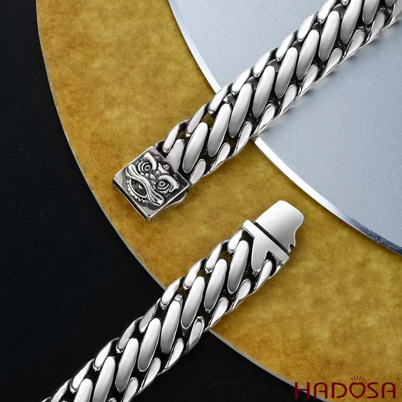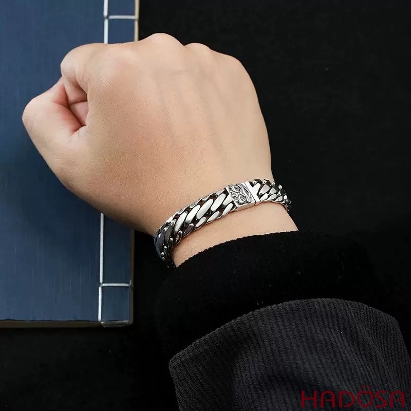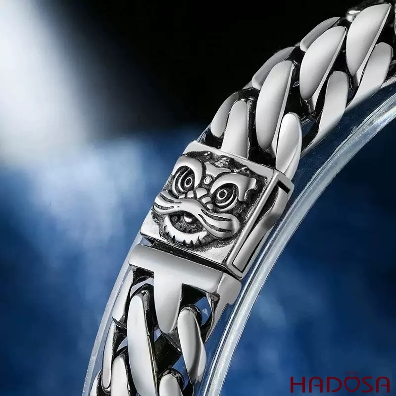 Lắc Tay Nam Bạc Thái 925 Móc Xích Bán Nguyệt Khóa Kỳ Lân Bảo Hộ