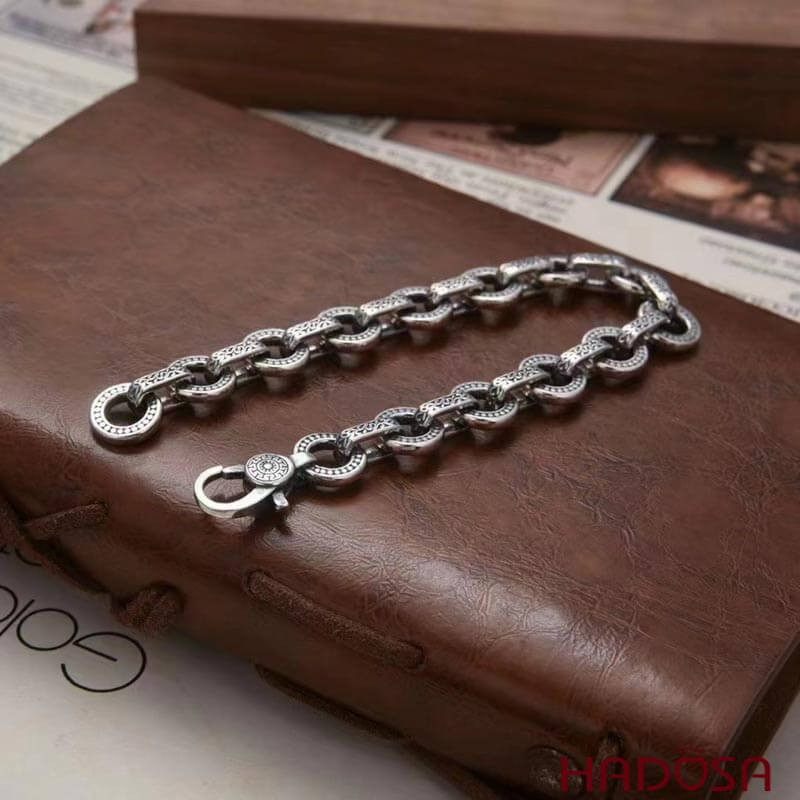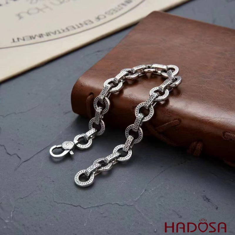 Lắc tay nam bạc Thái tròn họa tiết