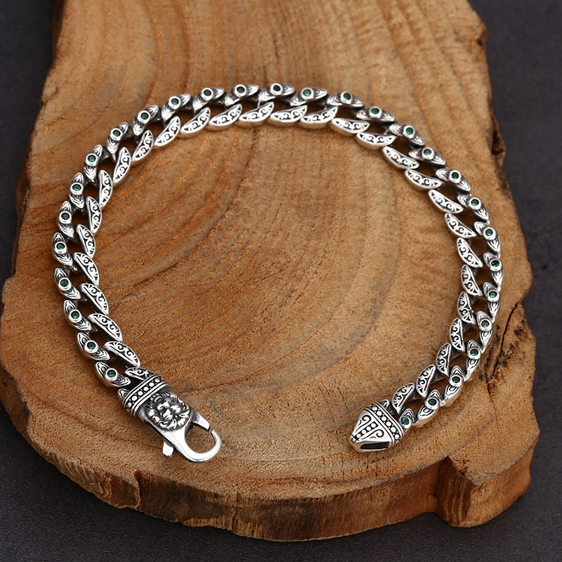 Lắc Tay Bạc Thái Nam Chuỗi Mắt Xích Họa Tiết Hộ Nhãn