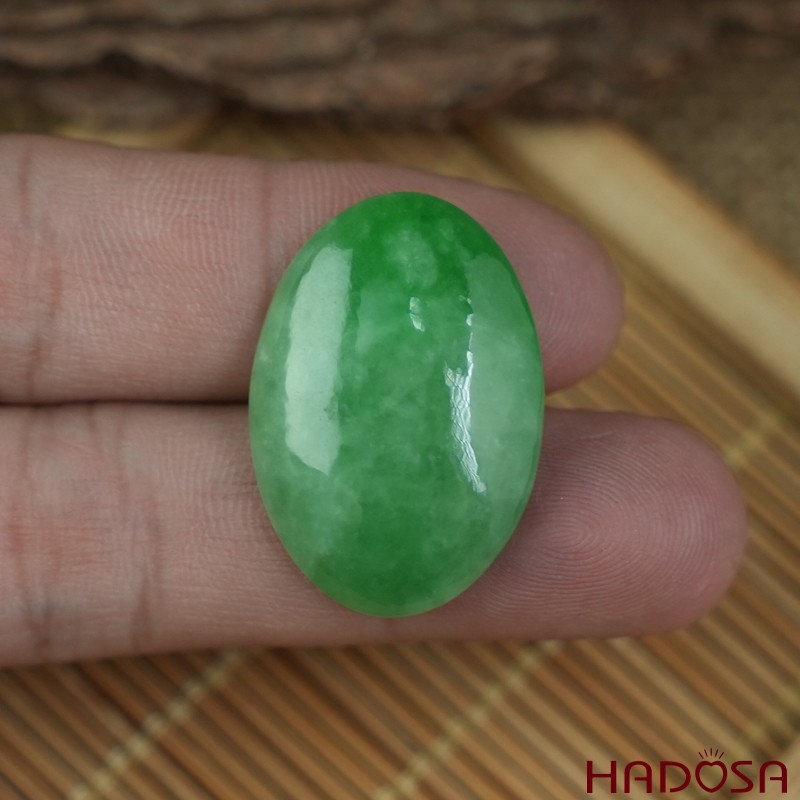 Mặt Cẩm Thạch Oval Xanh Đậu Vân Lý 19x27mm
