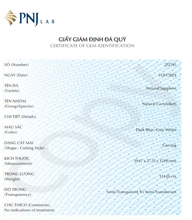 - Tiêu chuẩn chất lượng: hàng cao cấp đã được kiểm định bởi trung tâm giám định đá quý PNJ.