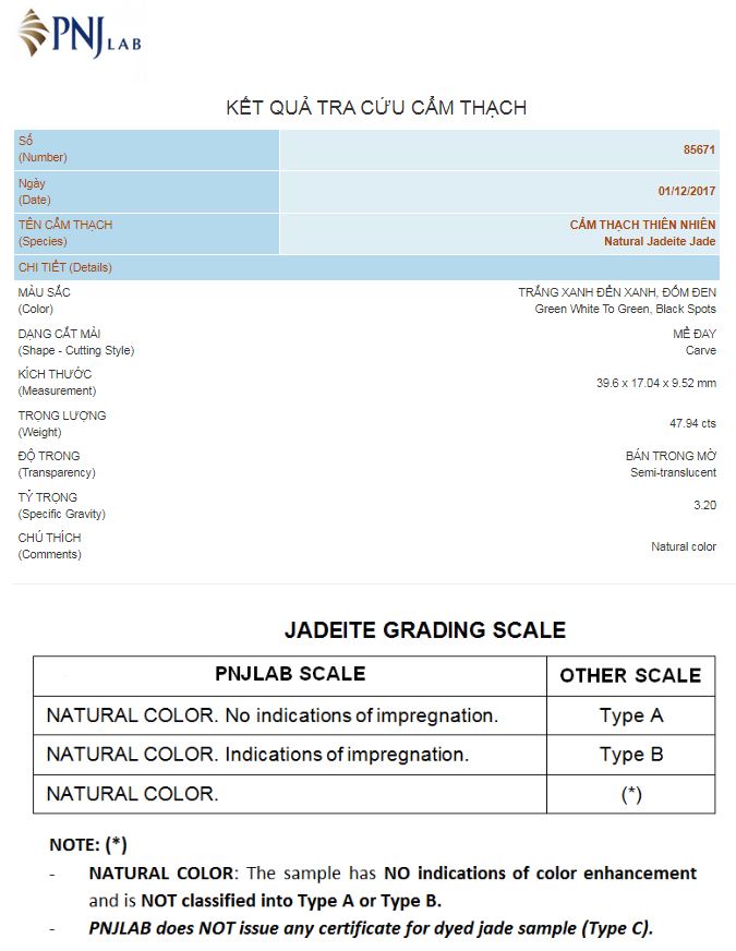 - Mã kiểm định: PNJ 85671