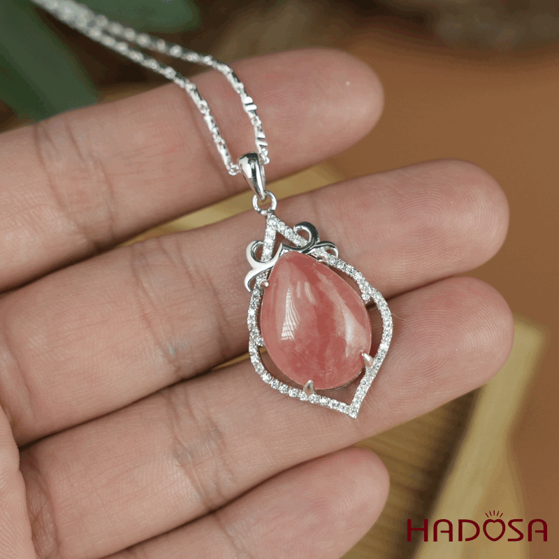 - Chất liệu: Đá Đào Hoa - Rhodochrosite tự nhiên.
