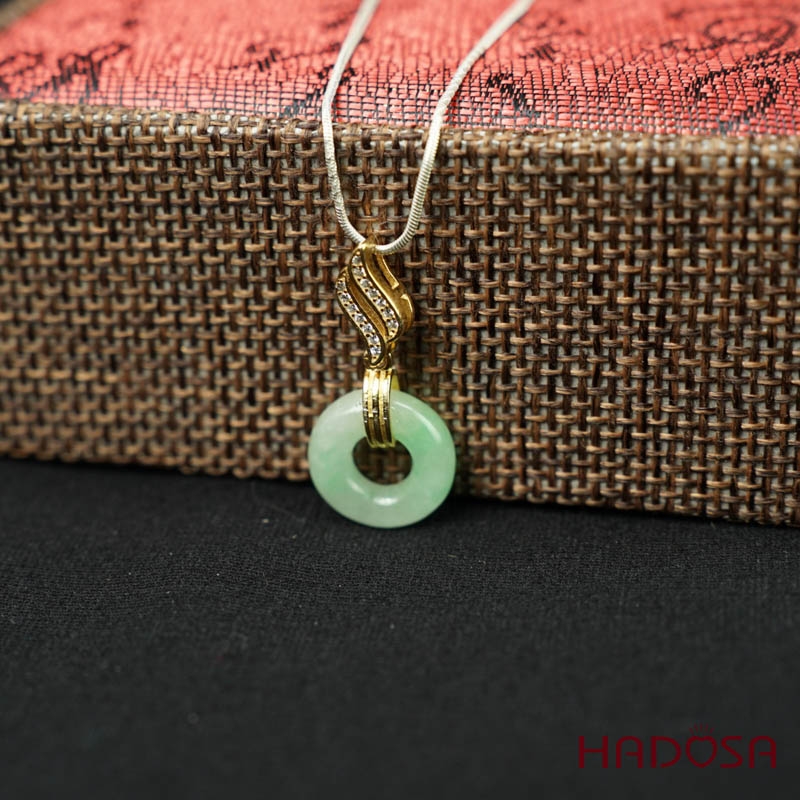- Chất liệu: Ngọc cẩm thạch tự nhiên kết hợp khoen bạc mạ vàng 925