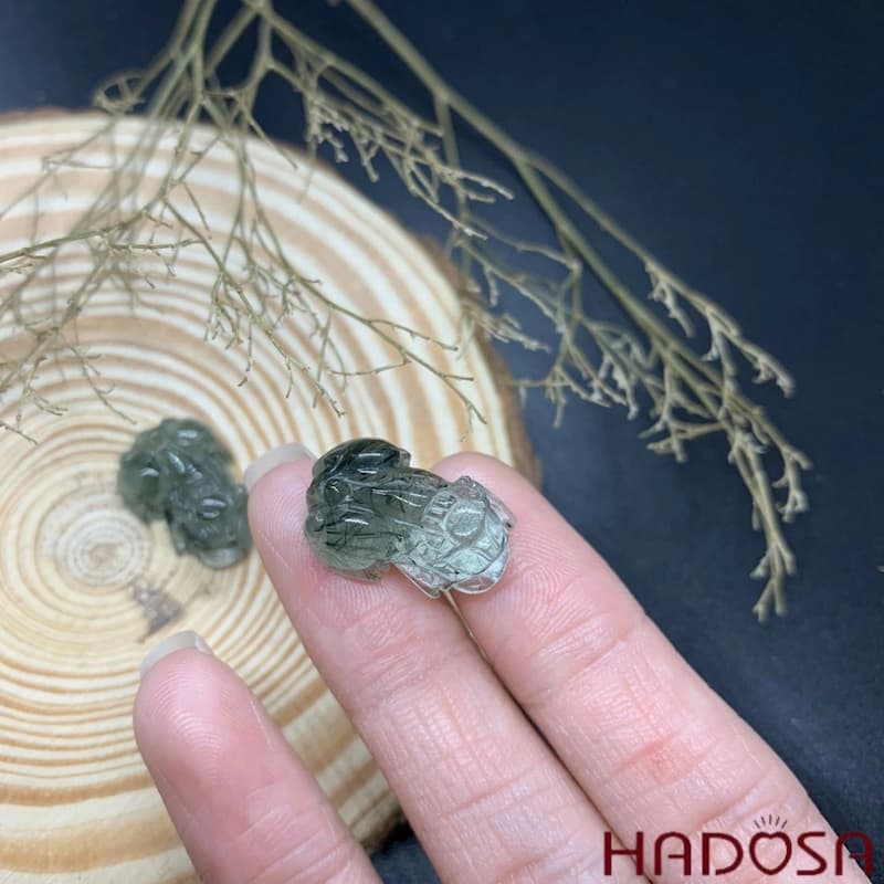 Mặt dây chuyền hình tỳ hưu từ đá thạch anh tóc xanh
