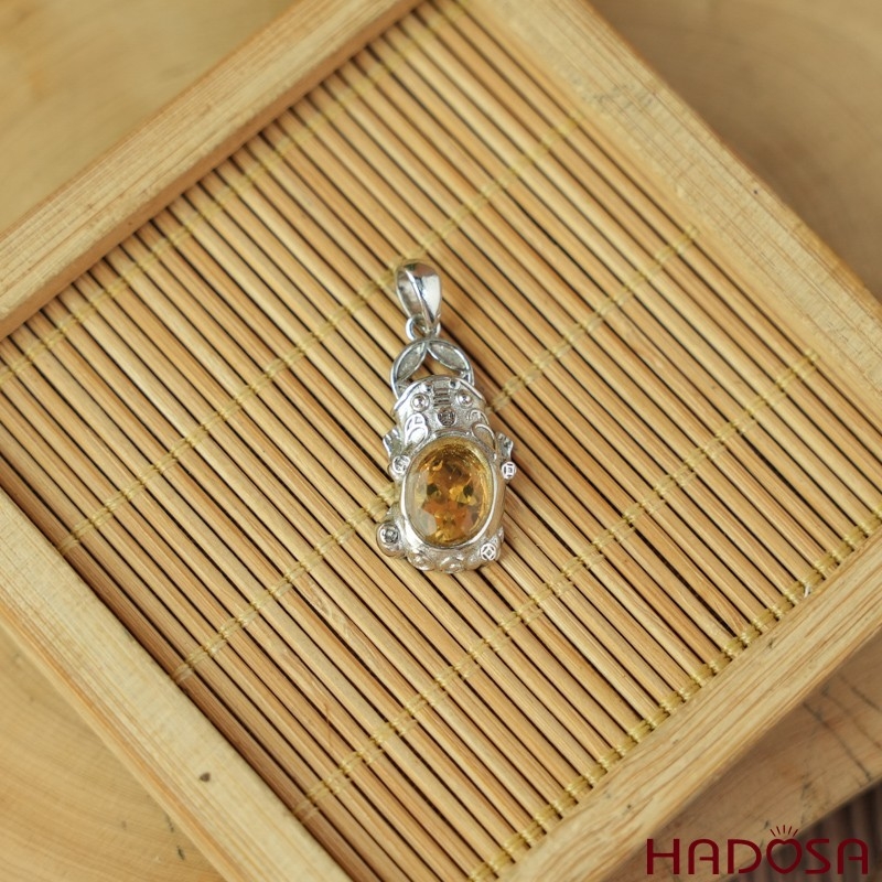 Mặt dây chuyền tỳ hưu đá Citrine 7x9mm bạc 925