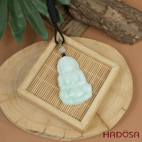 Phật Quan Âm Cẩm Thạch A Xanh Lý Môn 38x22mm