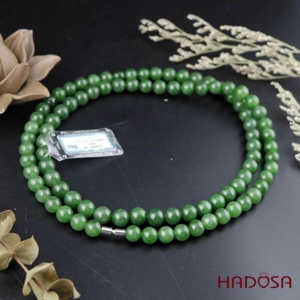 Vòng cổ ngọc bích tại HADOSA sở hữu sắc xanh trong trẻo, bề mặt được mài bóng tinh xảo giúp tôn lên vẻ đẹp thanh nhã và sang trọng cho người đeo. Không chỉ là món trang sức nổi bật, vòng cổ còn mang ý nghĩa bình an, may mắn và thịnh vượng, phù hợp để sử dụng hằng ngày hoặc làm quà tặng đầy giá trị tinh thần.