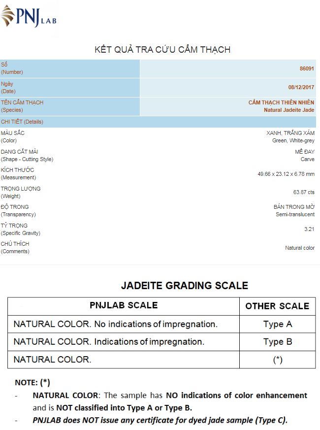 - Mã kiểm định: PNJ 86691