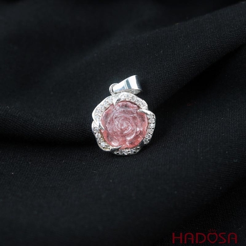 Mặt dây chuyền Hoa mẫu đơn thạch anh dâu đỏ