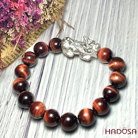 Vòng thạch anh mắt hổ nâu đỏ 10mm mix tỳ hưu bạc
