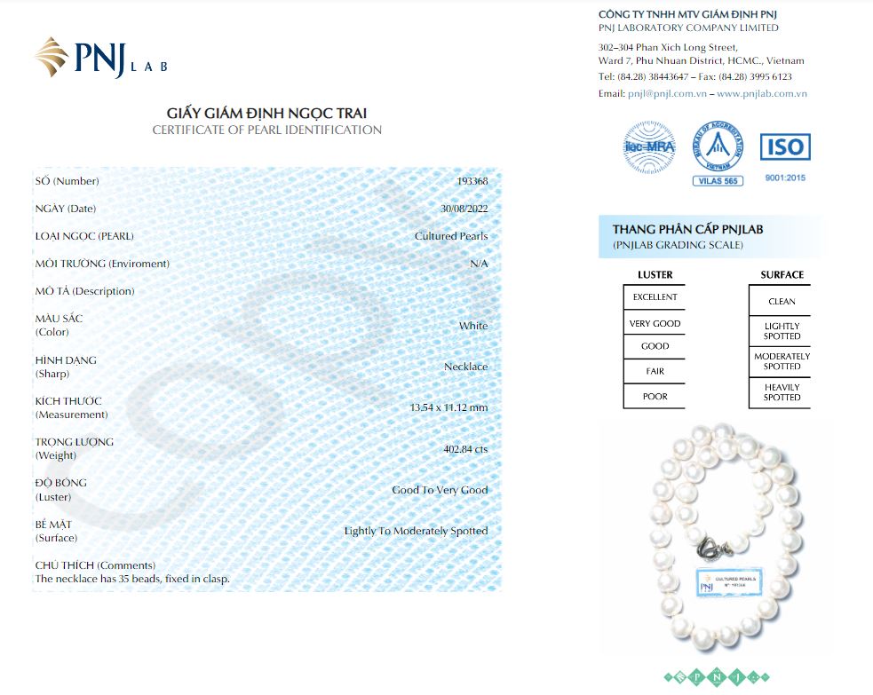 - Tiêu chuẩn chất lượng: hàng cao cấp đã được kiểm định bởi trung tâm giám định đá quý PNJ.