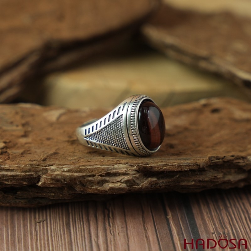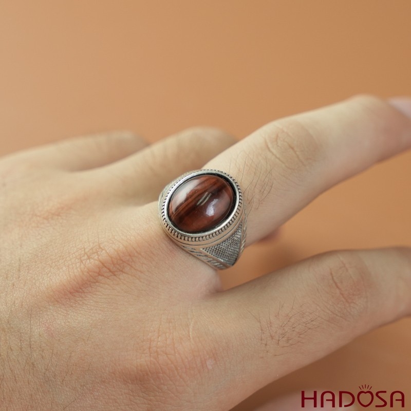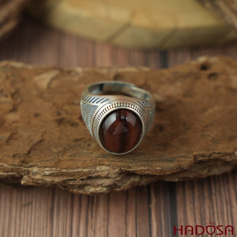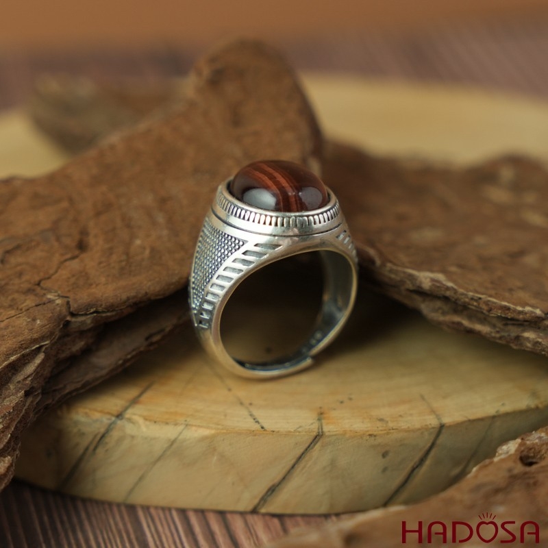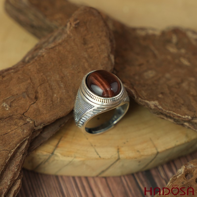 Nhẫn bạc 925 mặt đá mắt hổ nâu đỏ 12x16mm