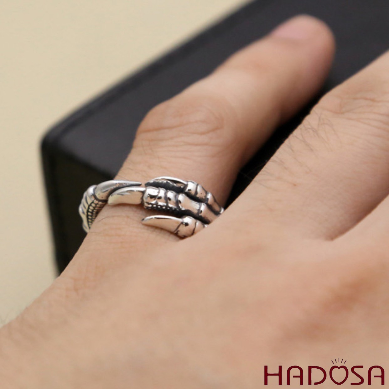 - Các sản phẩm Nhẫn bạc nam đẹp móng Rồng của Hadosa được xử lý bởi công nghệ oxy hóa cao tạo nên màu đen xen kẽ với màu trắng của bạc và được kiểm soát trong suốt quá trình oxy hoá nên nó rất bền, không bị phai màu theo thời gian bạn sử dụng.