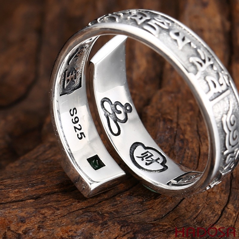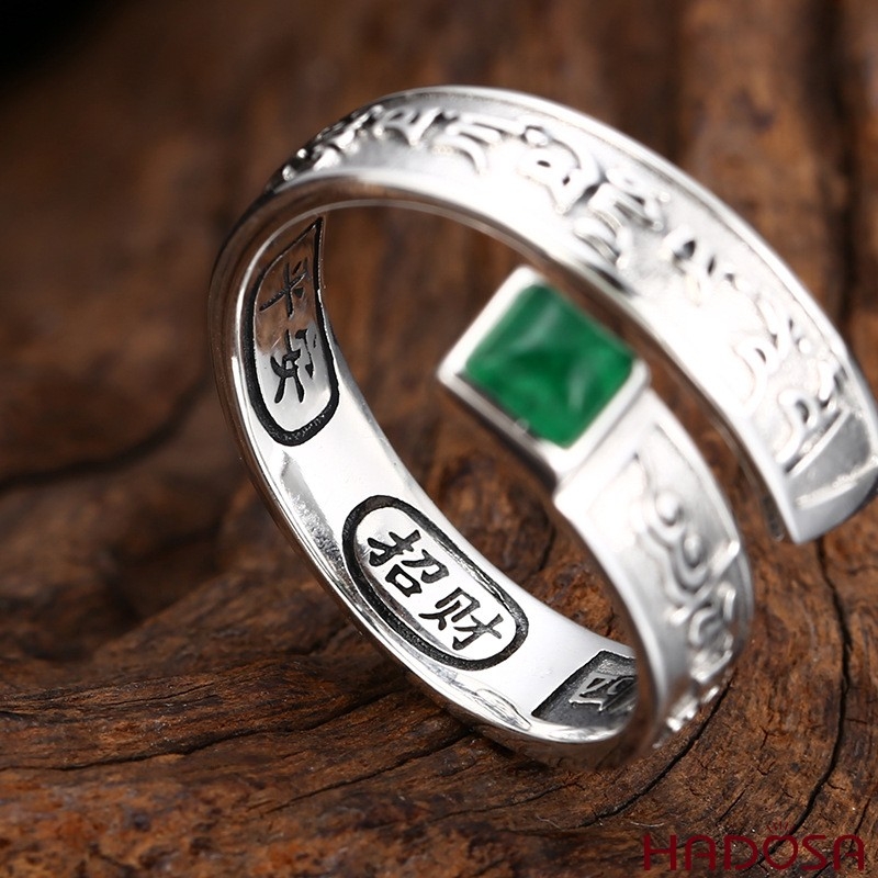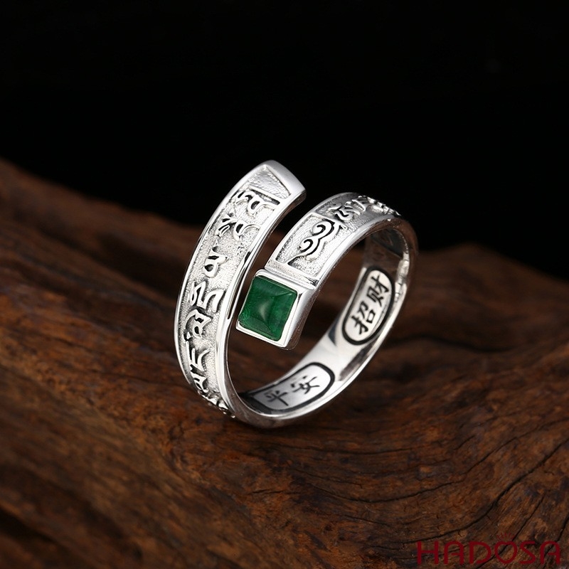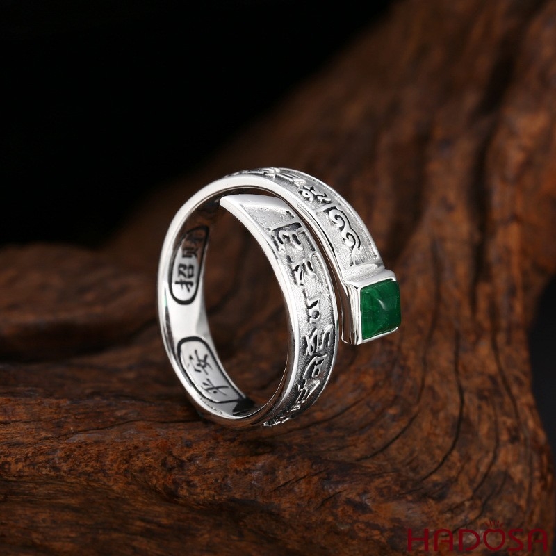 Nhẫn Bạc Thái Đá Xanh Khai Tài Lộc