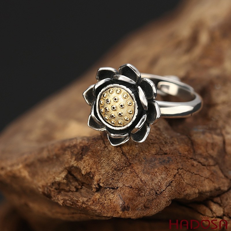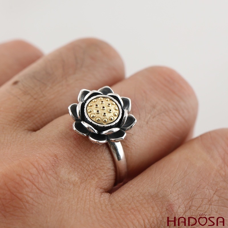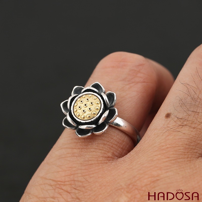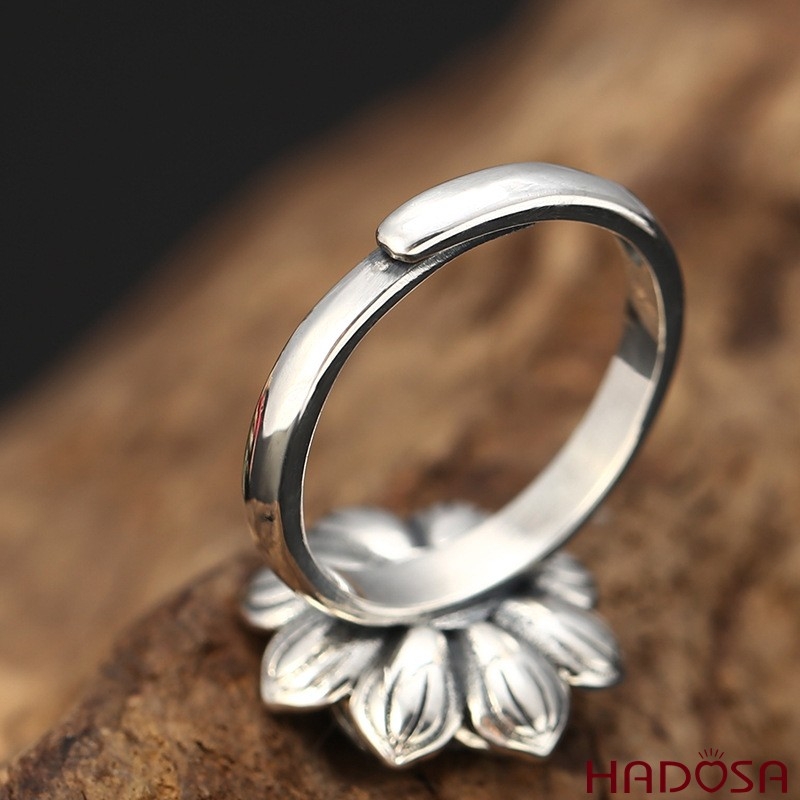Nhẫn Bạc Thái S925 Hoa Sen Xoay Thanh Tịnh May Mắn