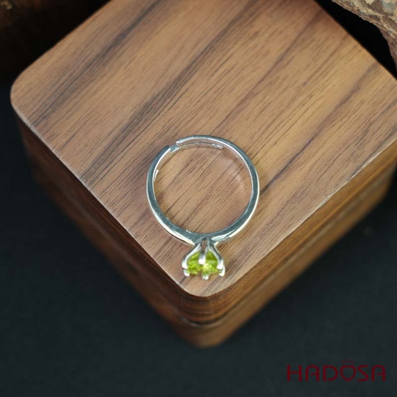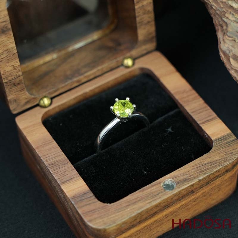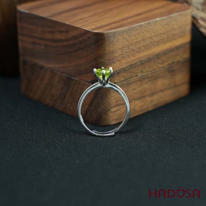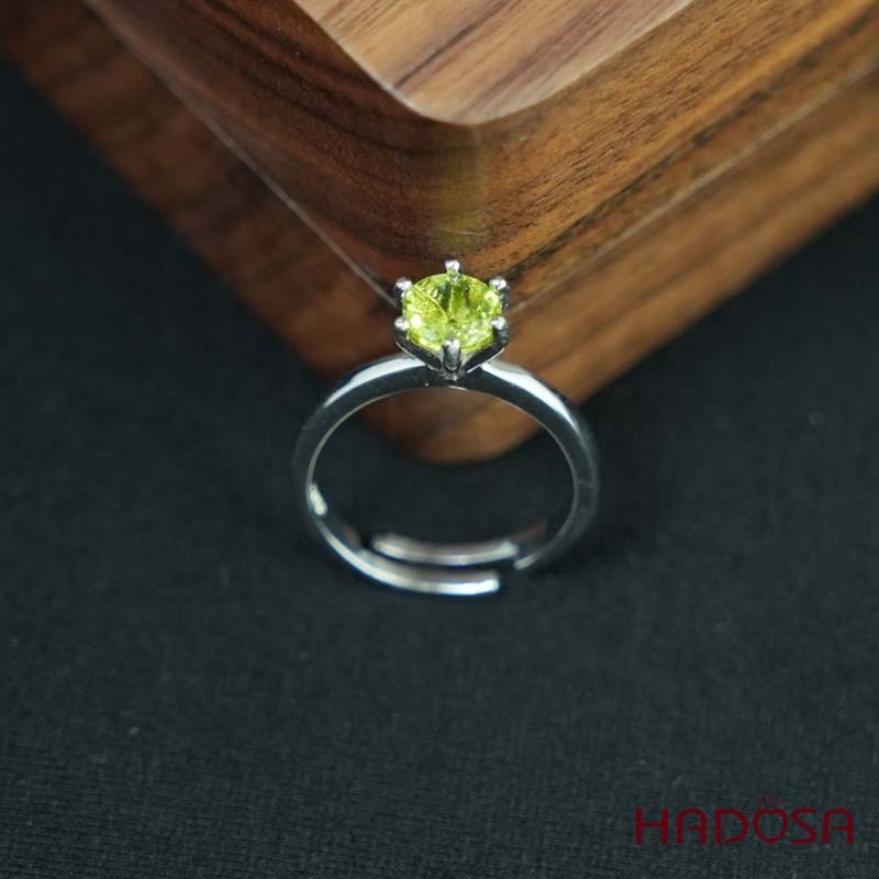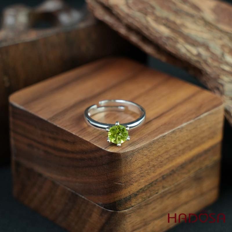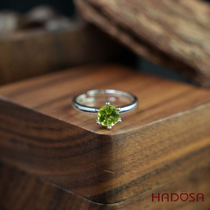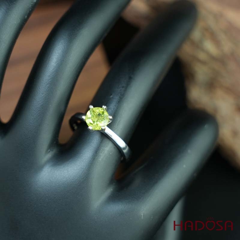 Nhẫn đính đá Peridot tròn 6mm bạc 925