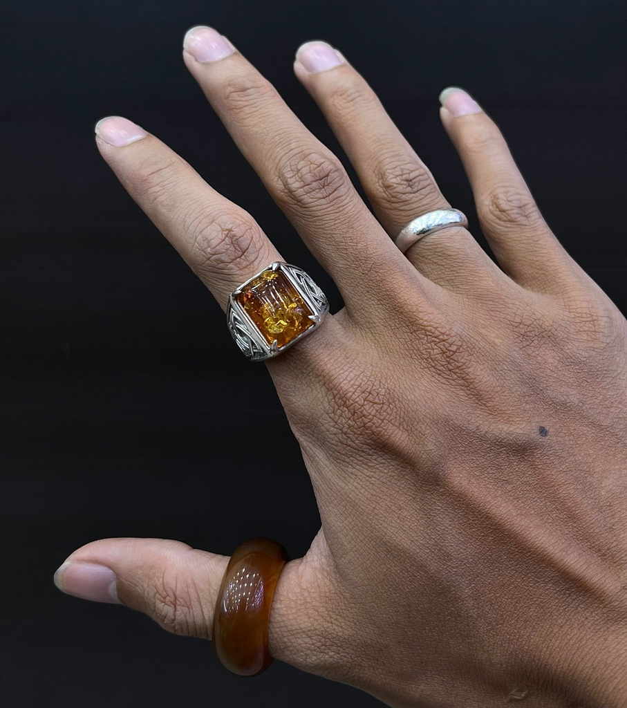 Nhẫn Hổ phách Baltic chữ nhật 12x16mm bạc 925