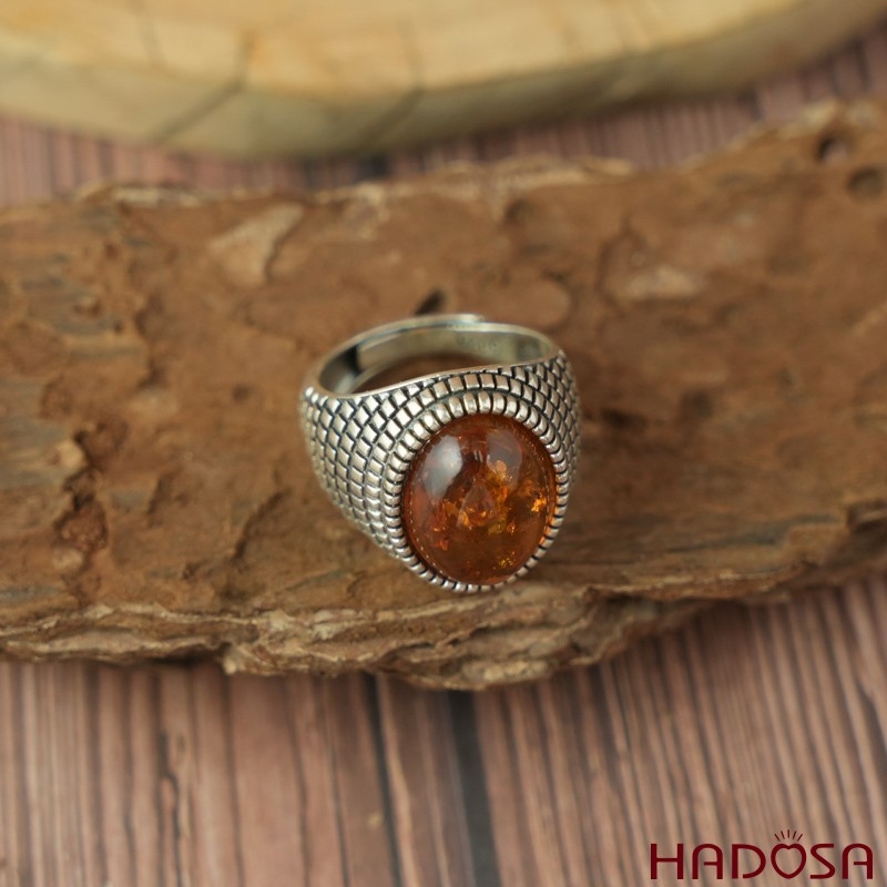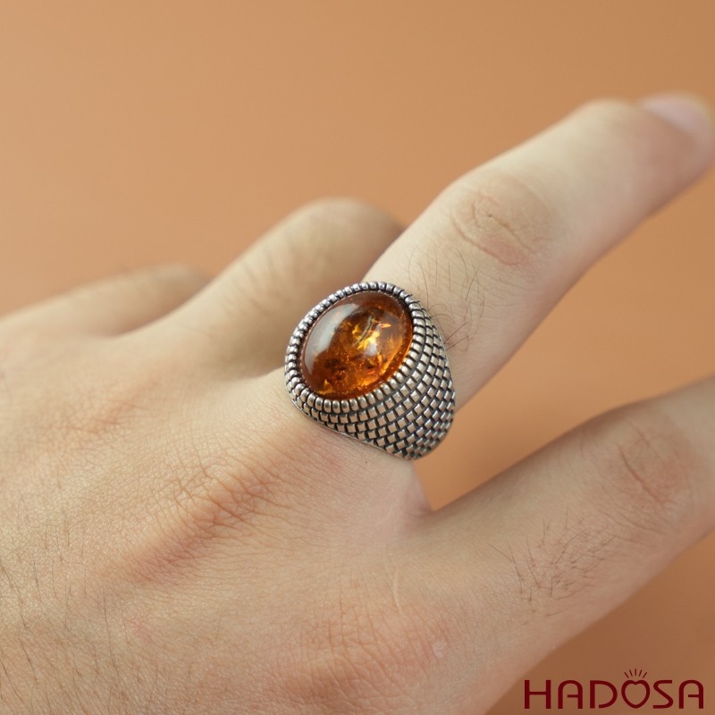 Nhẫn nam bạc Thái 925 mặt Hổ phách oval 12x16mm