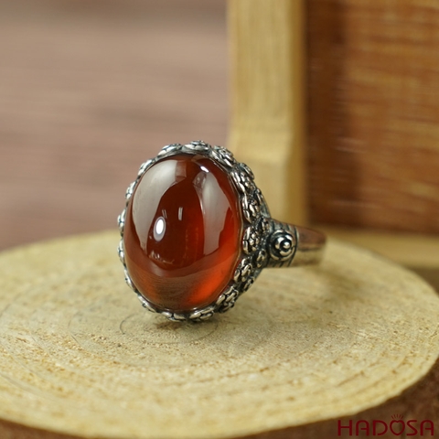 Nhẫn bạc đính đá Garnet 7mm size 11