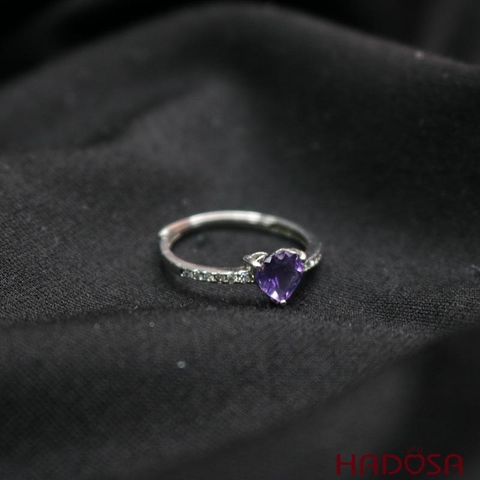 Nhẫn Thạch anh tím tim 6mm bạc 925