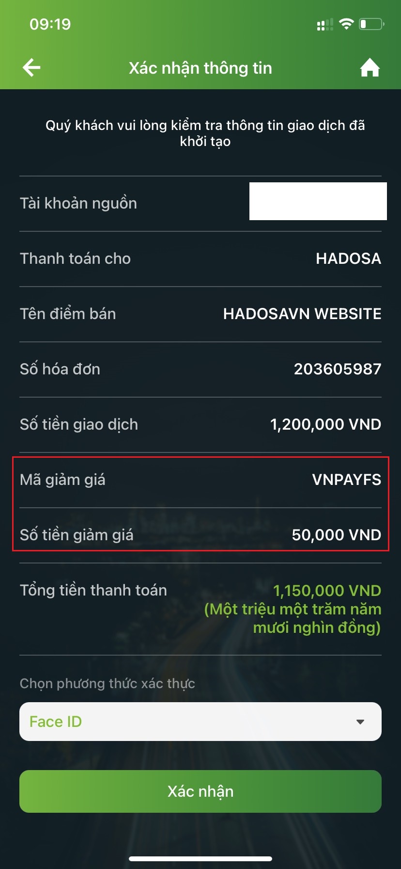 Nhập mã VNPAYFS nhận ngay ưu đãi đến 50.000đ khi thanh toán qua VNPAY tại HADOSA