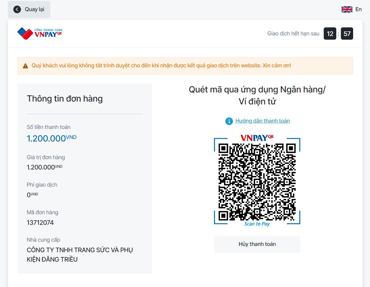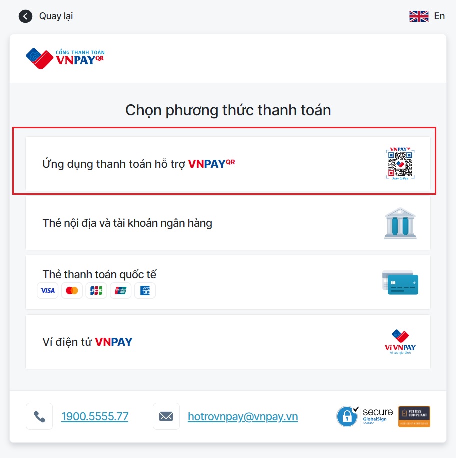 Bước 4: Chọn hình thức Ứng dụng thanh toán hỗ trợ VNPAY-QR