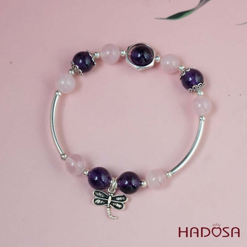 Vòng thạch anh tím mix thạch anh hồng 9mm charm bạc 925