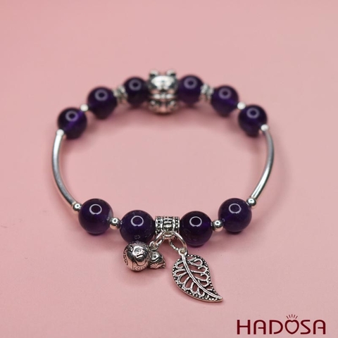 Vòng Thạch Anh Tím 8mm mix charm bạc 925 (Hỏa, Thổ)