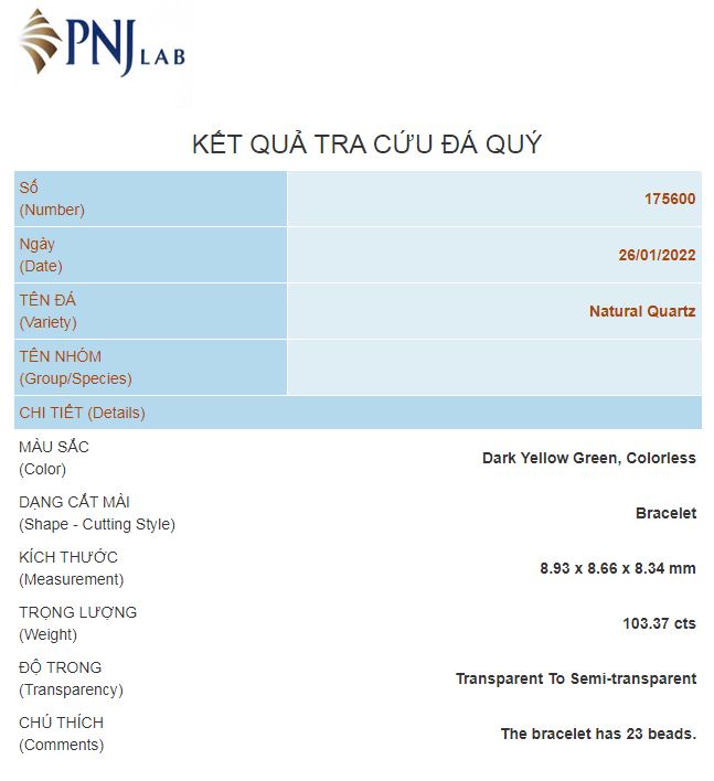 - Tiêu chuẩn chất lượng: hàng cao cấp được kiểm định bởi trung tâm giám định đá quý PNJ.