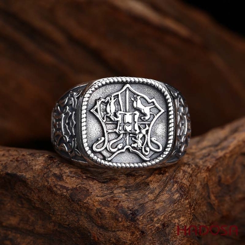 Nhẫn bạc Thái nam mặt huy chương học viện Hogwarts