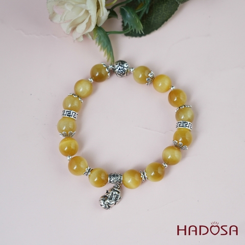 Vòng mắt hổ vàng tâm 10mm mix charm bạc 925