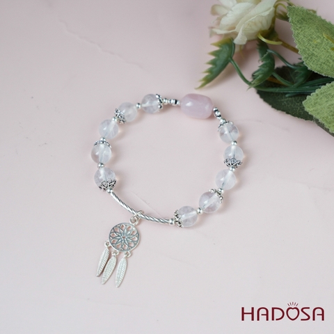 Vòng tay thạch anh trắng mix lu thống thạch anh hồng charm bạc 925
