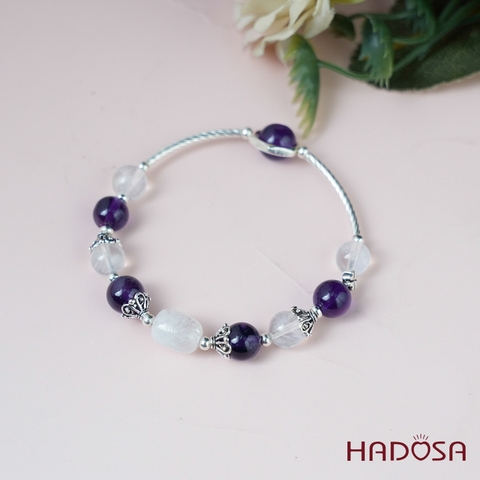 Vòng thạch anh tím mix thạch anh trắng charm bạc 925