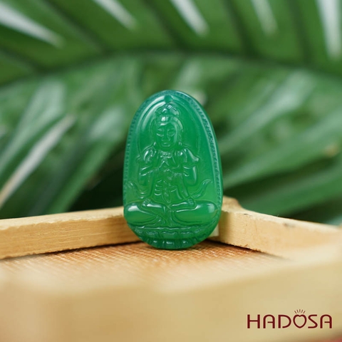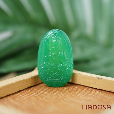 Phật bản mệnh Như Lại Đại Nhật (Mùi, Thân) mã não xanh lá 37mm