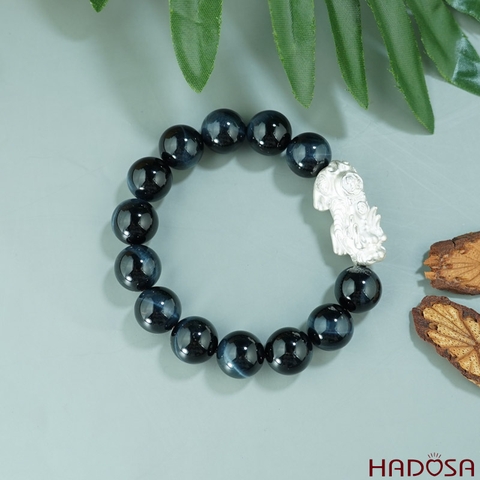 Vòng Thạch Anh Mắt Chim Ưng 14mm mix Tỳ Hưu bạc