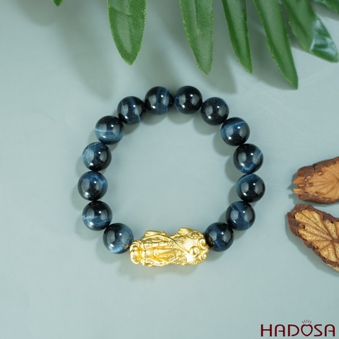 Vòng Thạch Anh Mắt Chim Ưng 14mm mix Tỳ Hưu bạc mạ vàng