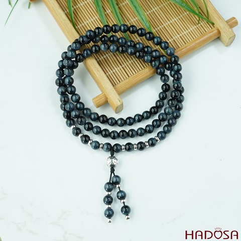 Vòng 108 hạt đá Thạch Anh Mắt Chim Ưng 6mm mix charm bạc 925