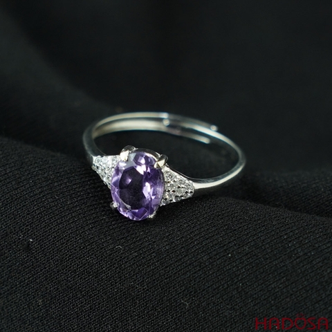 Nhẫn bạc đính đá Thạch Anh Tím 6*8mm