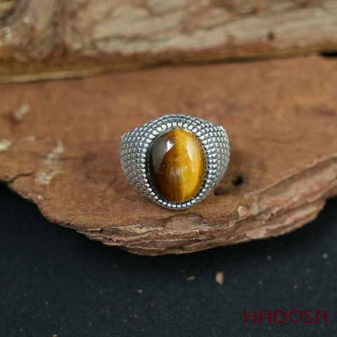 Nhẫn bạc nam 925 mặt đá mắt hổ vàng nâu 12x16mm