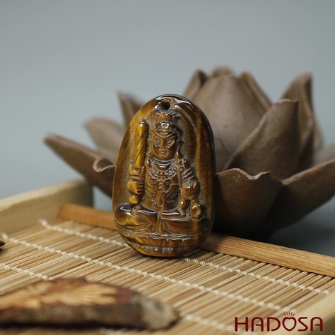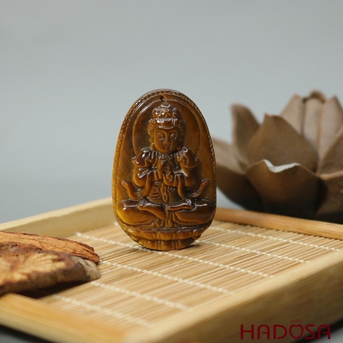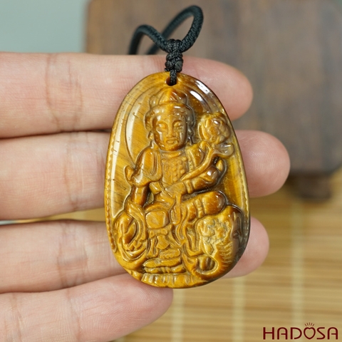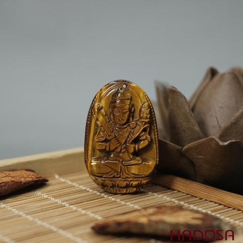 Mặt đá Mắt Hổ vàng nâu Vân Thù Bồ Tát (Mão) 36*24*8mm