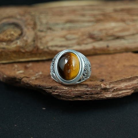 Nhẫn bạc 925 đá Mắt Hổ vàng nâu